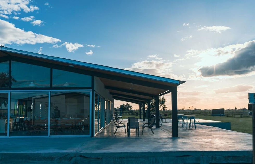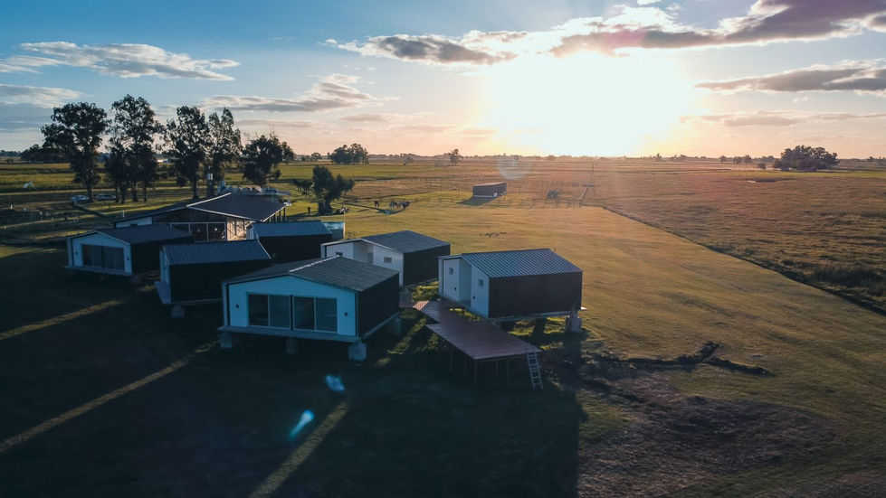 Conjunto de cabañas en entorno rural.